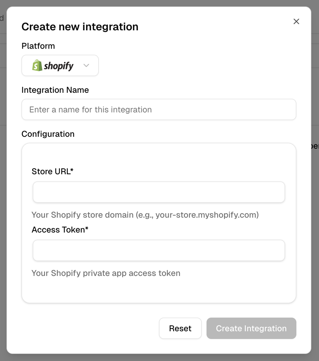 Step 2. Choose Shopify from dropdown and insert details and save.