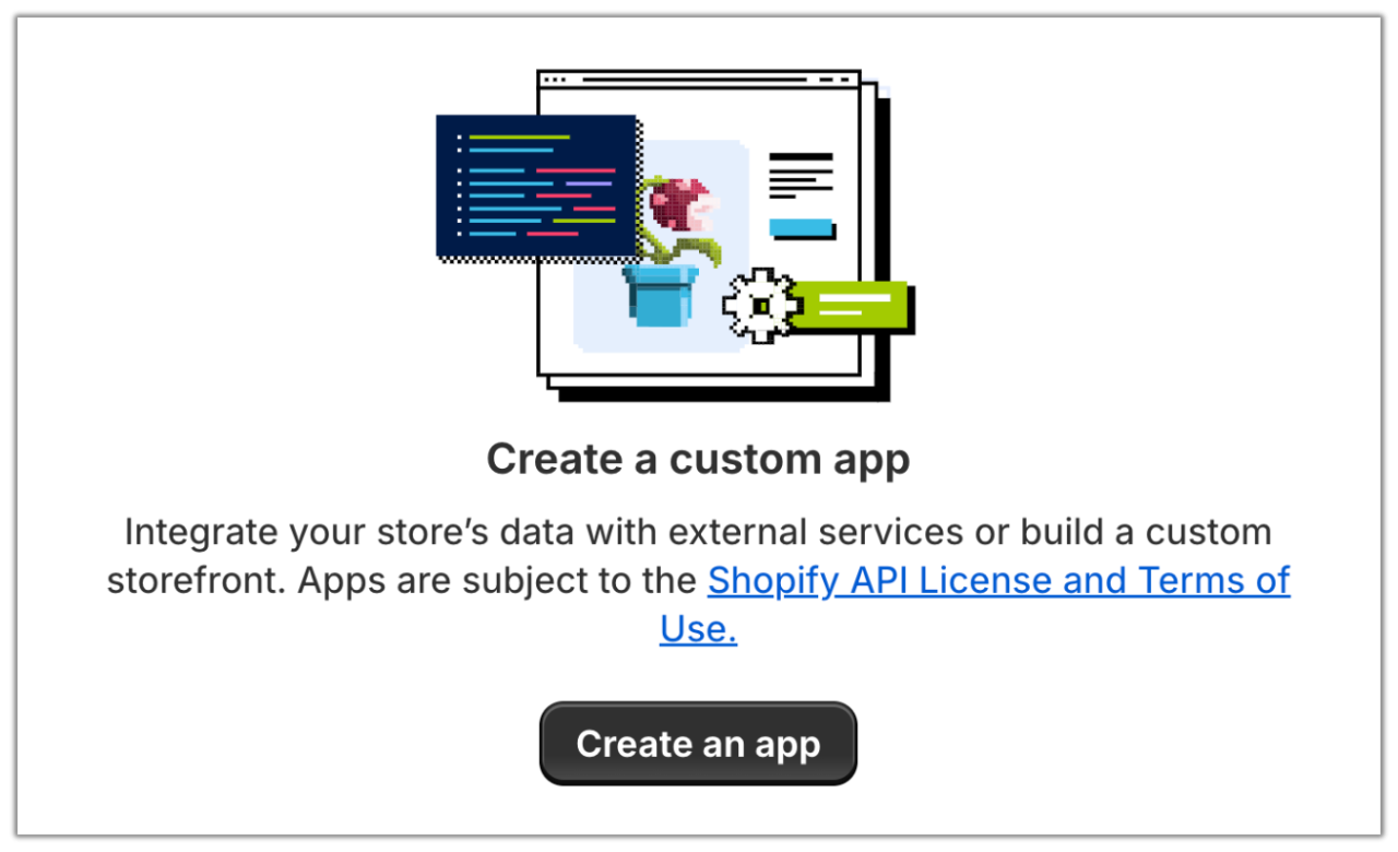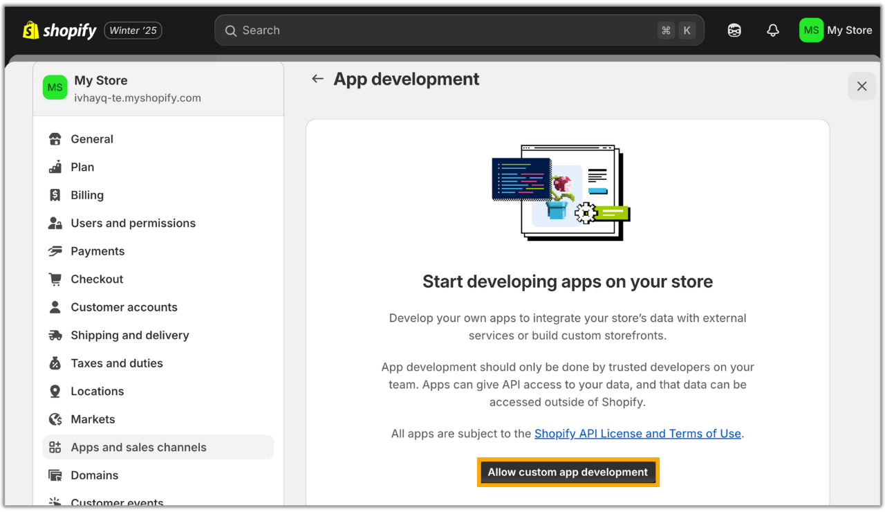 Step 7. After you've allowed the custom app development, you can select "Create an app".