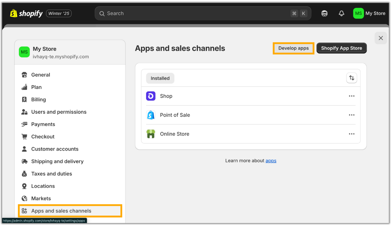 Step 2. Copy this URL you see in settings. This is your store URL.