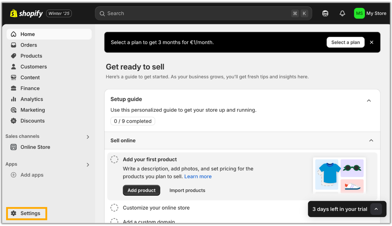 Step 2. Click on "Settings" in the admin section on the left sidebar.